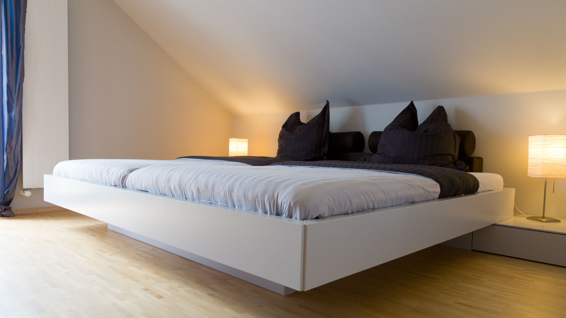 Ruhige Linien und abgetönte Farbgebung, spannende Texturen und weiches Licht unterstützen Ihren gesunden Schlaf und machen diesen Raum zu Ihrer Energiequelle.